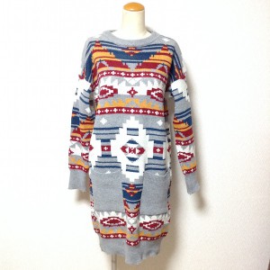 エスニック柄長袖ニットワンピース