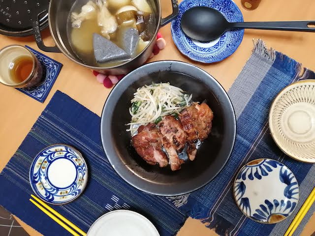 大根、卵、コンニャク、手羽元、厚揚げでこたつdeおでん。