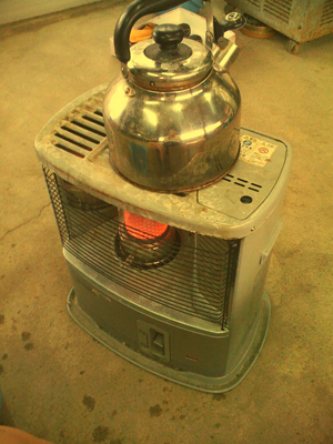 おばちゃんがストーブで沸いたお湯で足湯出してくれた♪
