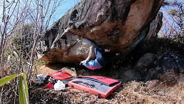 やっと初手できたーと思ったら、アンダーからの小ガバ出しがバランス崩れて、足抜けて、ニーバー外れると3重苦。