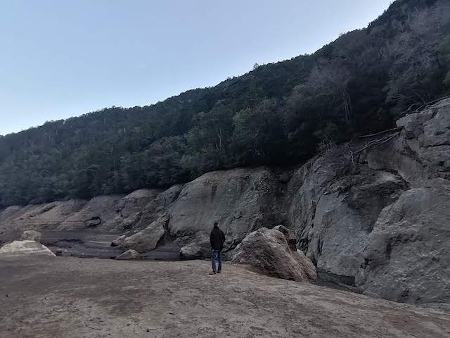 いざ、湖底ボルダー見学へ。