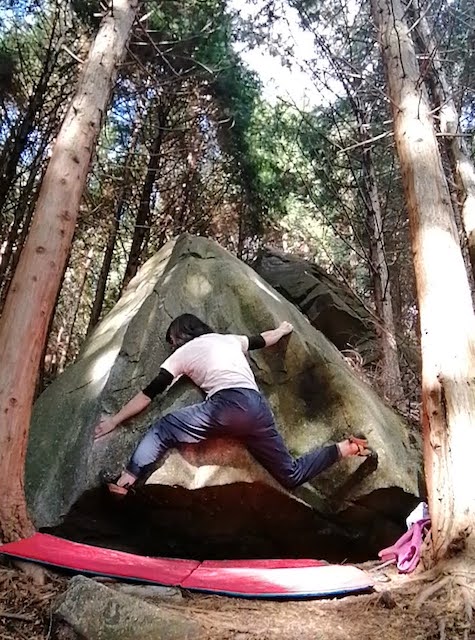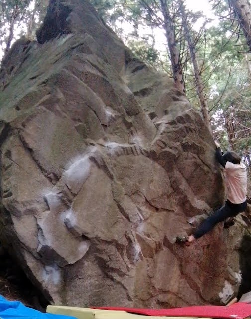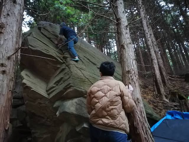 私は、アスパラガスへ。この岩が中々の強傾斜という事を思い出した。