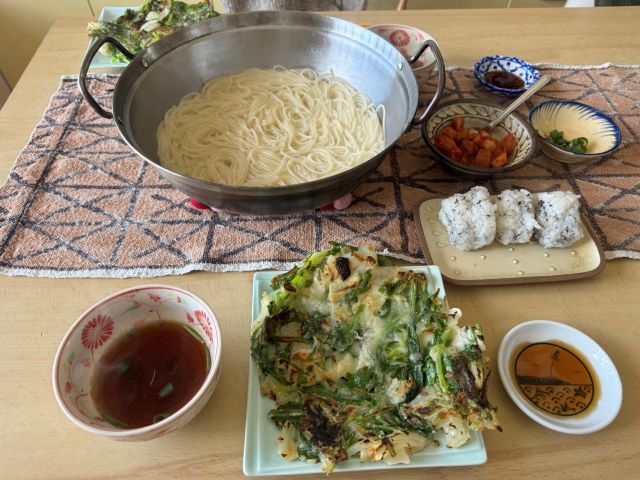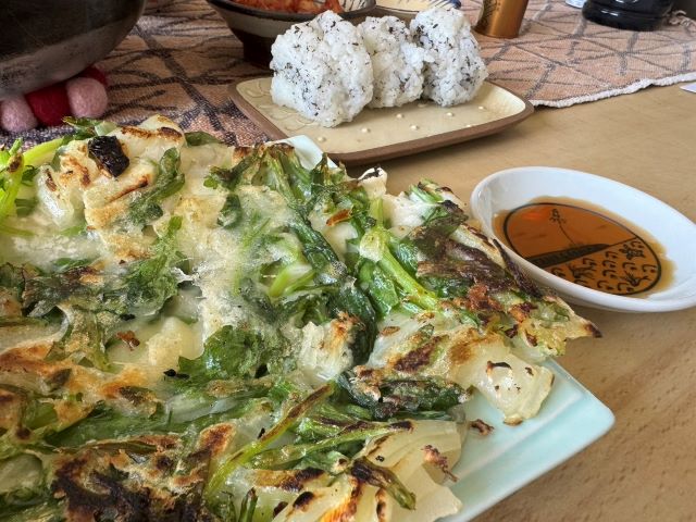 最近、自分レシピが定まってきた、チヂミを春菊で春菊チヂミ。