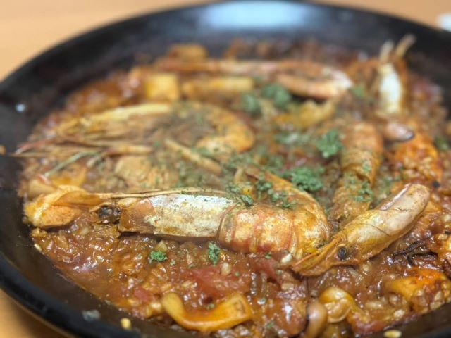 アオリイカに赤エビ、鶏でノーマルパエリア。