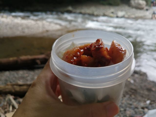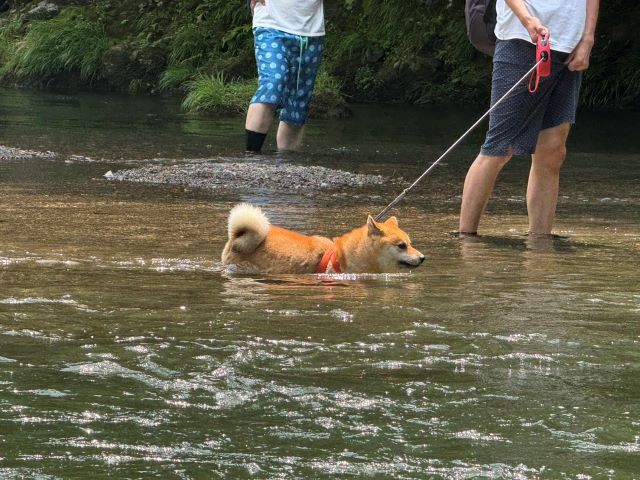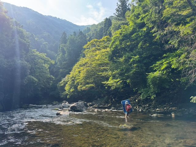 川渡れる所、浅めの手前を渡る。クロックス滑りがち。