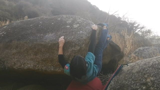 すごい小岩やのに、抱え込み、挟み込みスローパーヒールで、めっちゃ難しかった。笑 敗退!次い!!