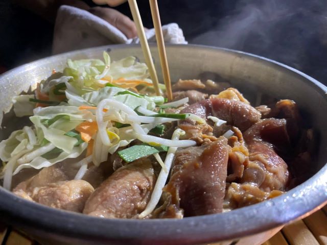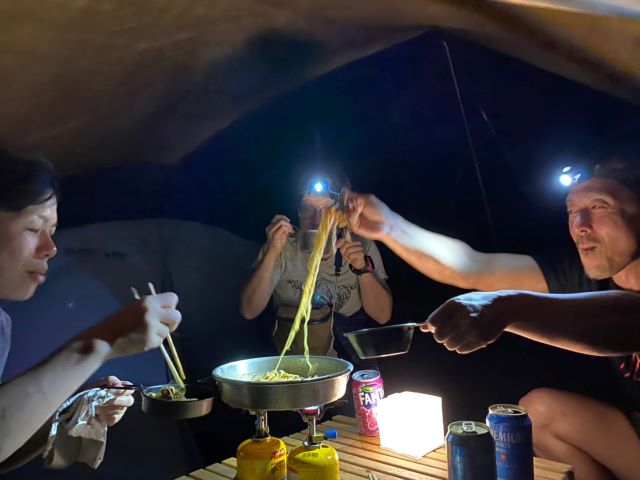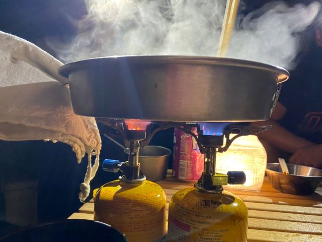 不安定鍋で、ジンギスカン焼きそばでしめ。