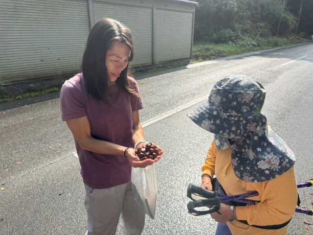 地元のおばあちゃんが、今日は車少ないから、拾いやすいわあ、と栗貰う。