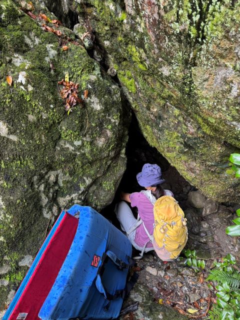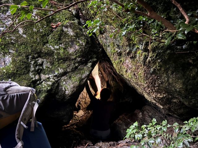 一か八かの洞窟アプローチ。本当は上から行けるんかな。
