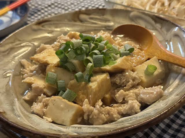 鶏ミンチ、ブンブンチョッパーで小さくすると食感美味しい。