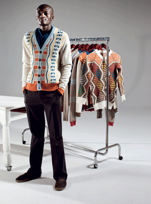 Laduma initially designed the knitwear to persuade Xhosa initiates out of their argyle prints and pullovers and into indigenous upscale sweaters with Xhosa beadwork-inspired motifs