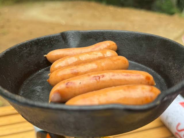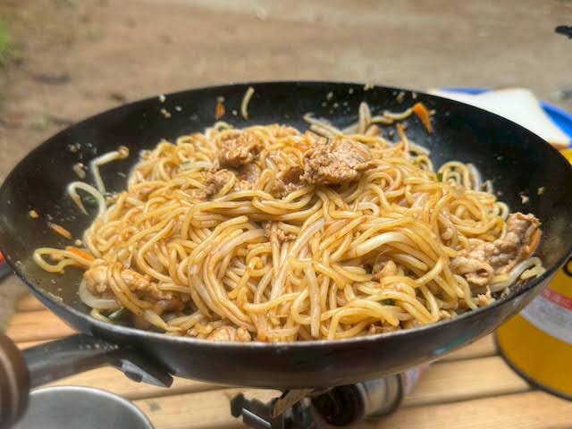 焼きそばに、餃子スープ、ウインナーでしっかり朝ごはん。
