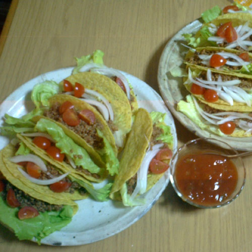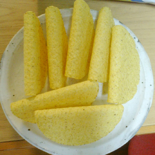 次は、トルティーヤを暖めます。写真みたいな、パリパリのやつは
