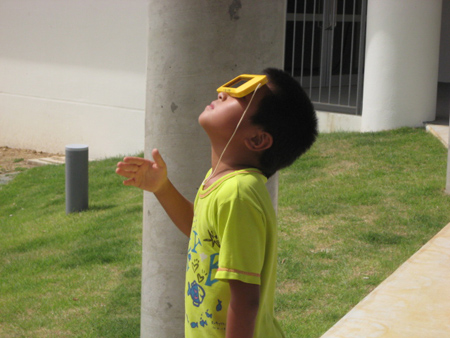 日食カメラを持ってないので、小学生におらおら。悪い大人発揮。
