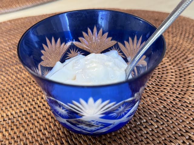 豆乳で作ったらつるつる滑らか杏仁豆腐に。