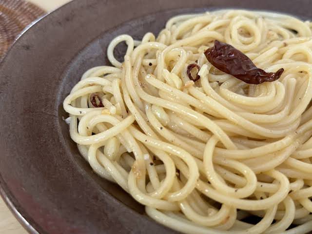 ふと思い立って、人生初めてのペペロンチーノ。自分で作ってみた。