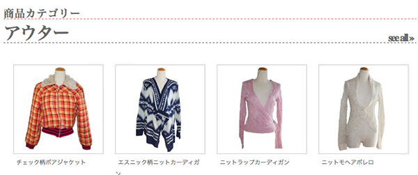 ↓こんな感じで、アウター・インナー等のカテゴリーです。