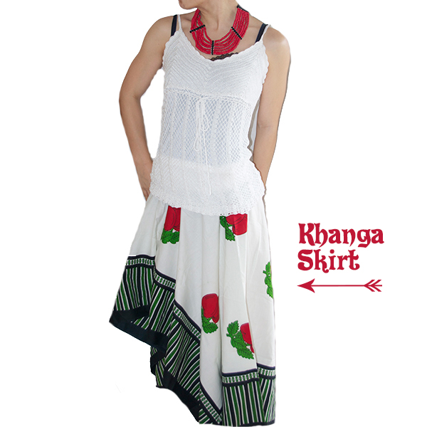 カンガスカートで夏コーディネートを作ってみました。 白×白でまとめて、赤を差し色にしてみました。 トップス、ボトムを白にして、差し色で何か色を入れると上手く纏まると思います。