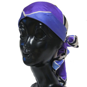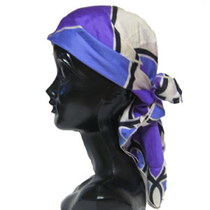 • 詳細 : 薄い紫と青紫の色の幾何学模様デザインもかわいいスカーフです。