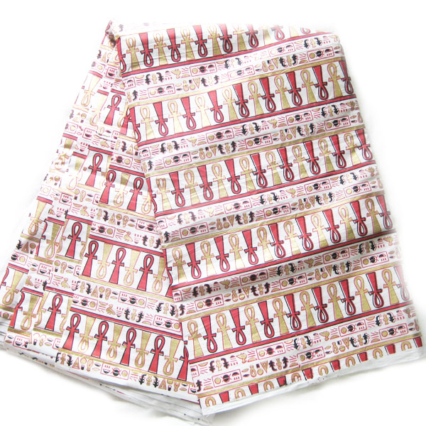 - 詳細 : 白地ベースに赤×ゴールドのアンク模様のアフリカンバティックです。
