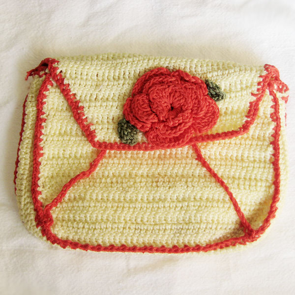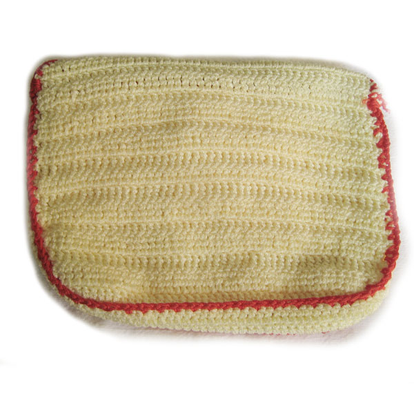 こちらもアクリル糸で編まれています。オススメのクラッチバッグです。