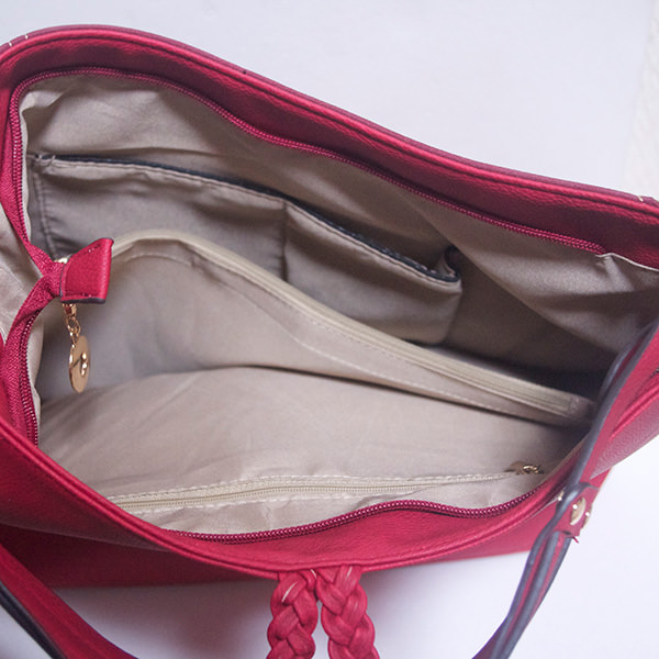 中は2つに分かれています。ポケットも中にも外にも付いています。