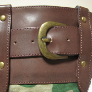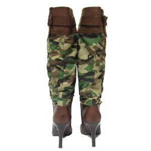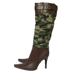 レザーと迷彩柄のコンビになっています。迷彩部分はキャンパス地の様な、コットンです。ヒールも高めで大人なロングブーツです。
