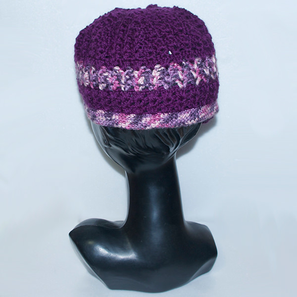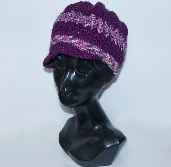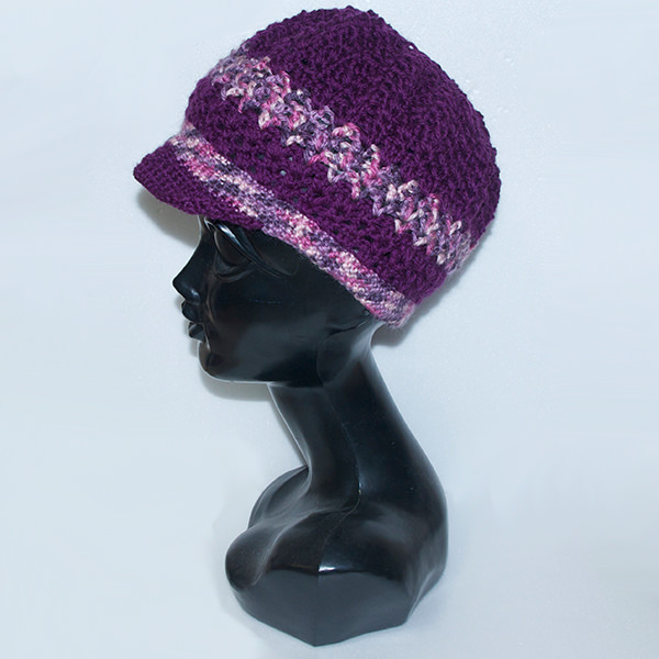 - 詳細 : 濃いめのパープルのツバ付きニットキャップ帽子です。