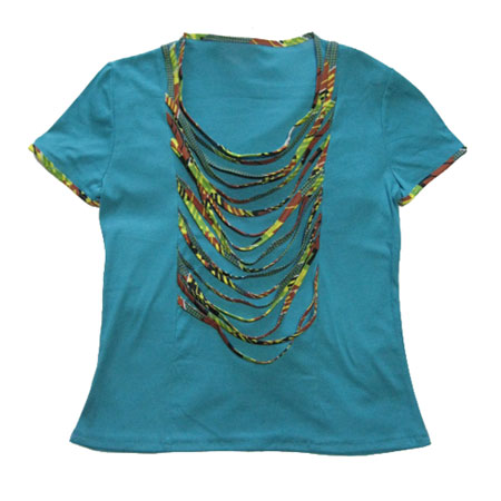 • 詳細 : 色の綺麗なターコイズブルーのTシャツにケンテのパイピング!