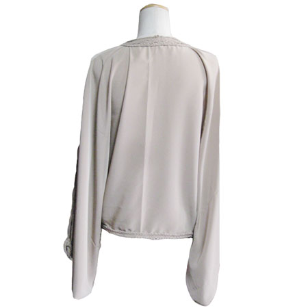 深めのVネックが大人です。袖口・首元・ウエストの絞る部分はブレードになっています。