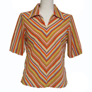 • 詳細 : オレンジ系のバイヤスボーダー半袖シャツです。