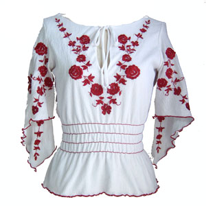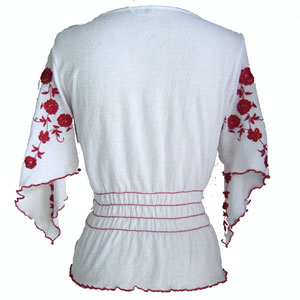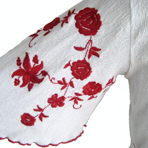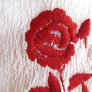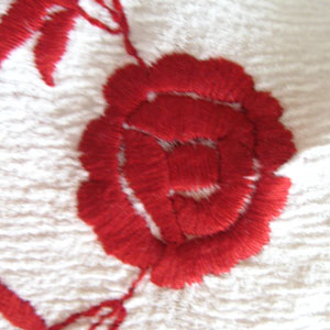あらゆる所に刺繍入り、白地に赤刺繍が映えますね!