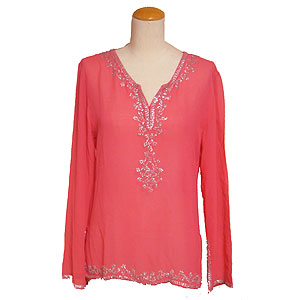 - 詳細 : 100%シルクのエスニックチュニックです。ショッキングピンクが綺麗です。