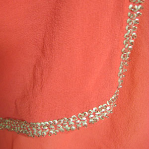 シルクなので肌触りも良く、上品です。ピンクにシルバー刺繍素敵な1枚です。