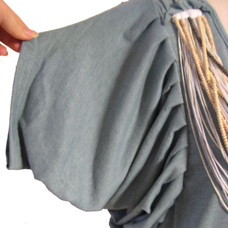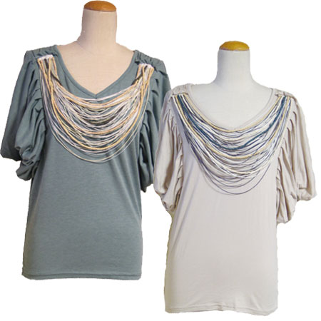首元には何連にもビーズが付いています!じゃらじゃらかわいいトップスです。