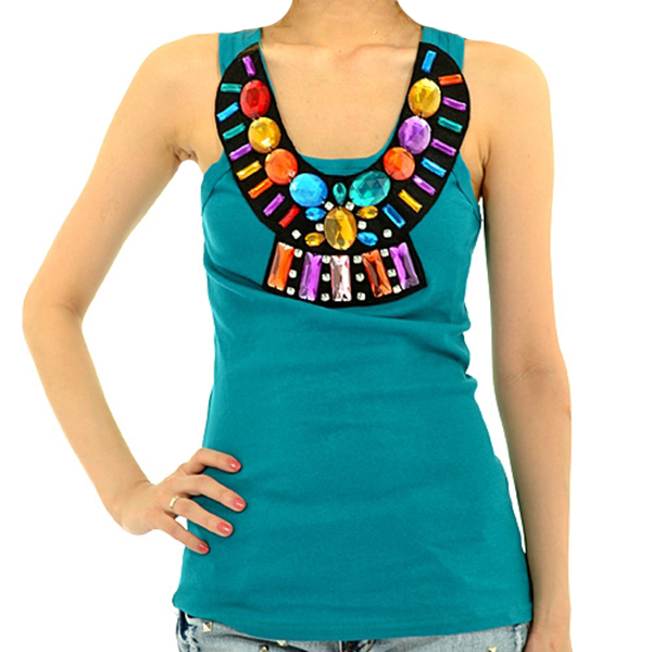 • 詳細 : 胸元に大きなビジューが付いたタンクトップです。