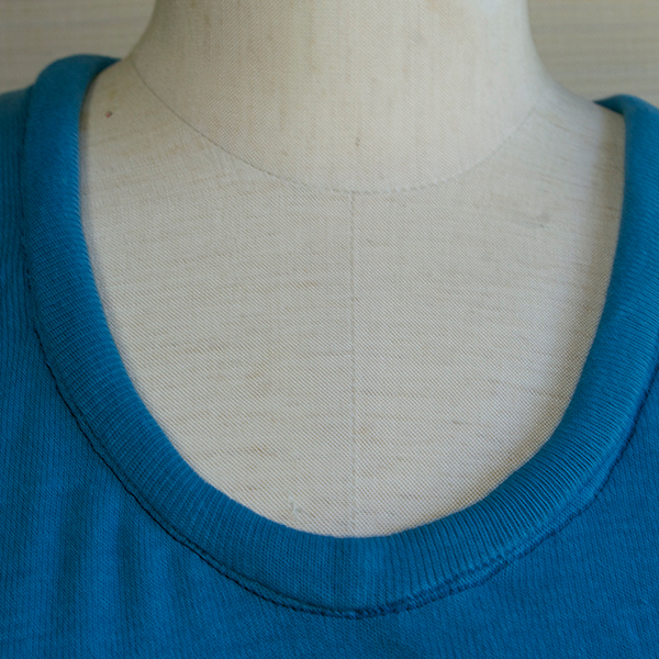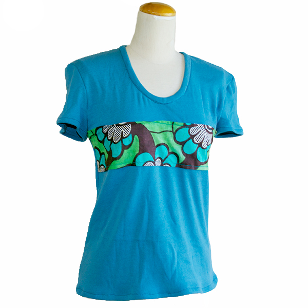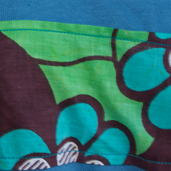 • 詳細 : 落ちついたブルーのアフリカンバティックが付いたTシャツです。
