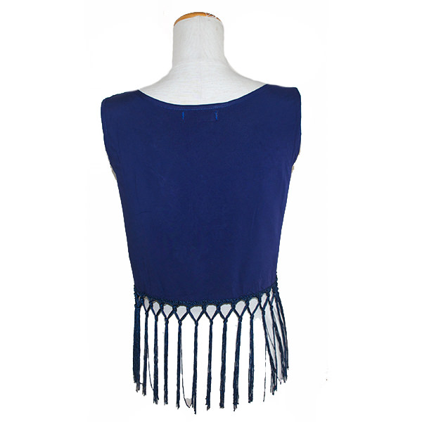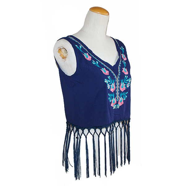 刺繍フリンジノースリーブトップス