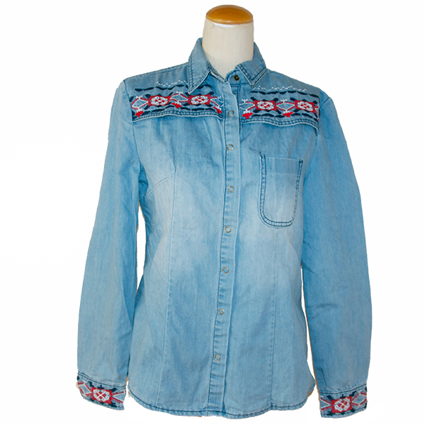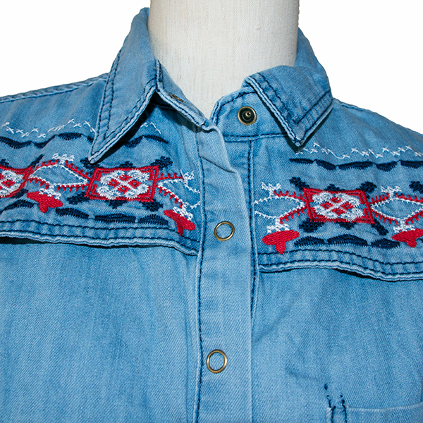 刺繍ダンガリーデニムシャツ