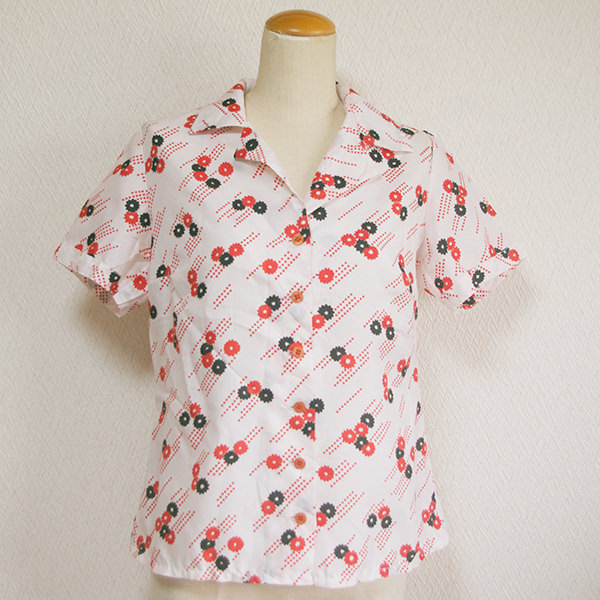 - 詳細 : フランス古着のレトロな小花柄の半袖シャツです。