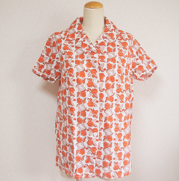 - 詳細 : フランス古着のレトロな小花柄の半袖シャツです。