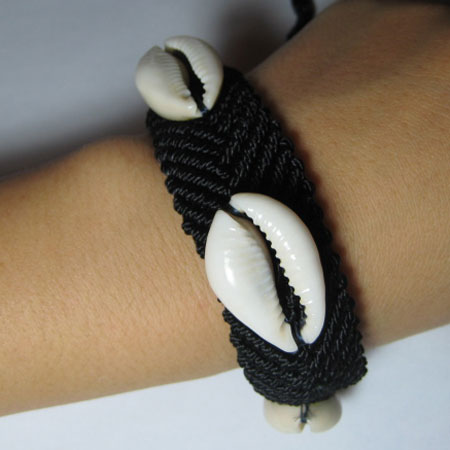 - 詳細 : シェルが3つ付いたバングルです。紐で結ぶタイプのブレスレット。