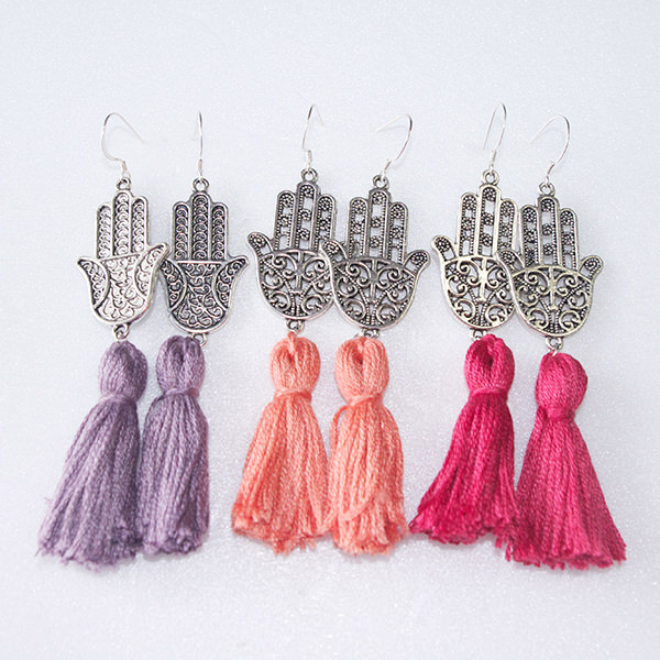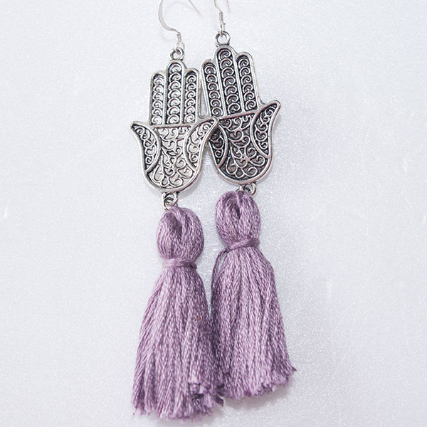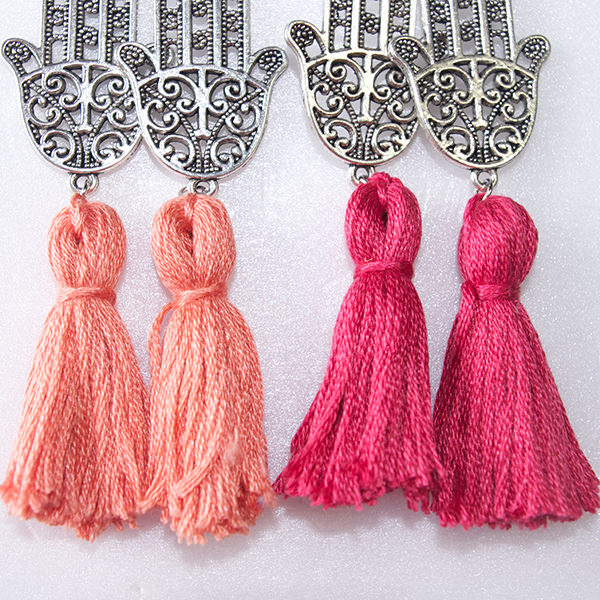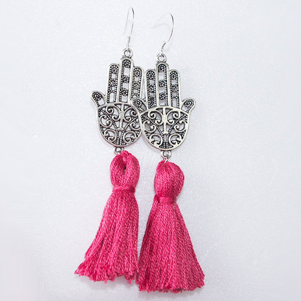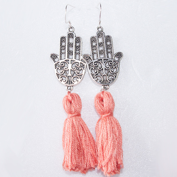 - 詳細 : 大人気のハムサハンド(ファティマの手)のタッセル付きピアスです。