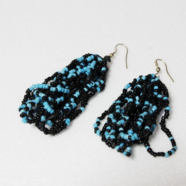 - 詳細 : 黒×ブルーのアフリカンテイストたっぷりのビーズピアスです。