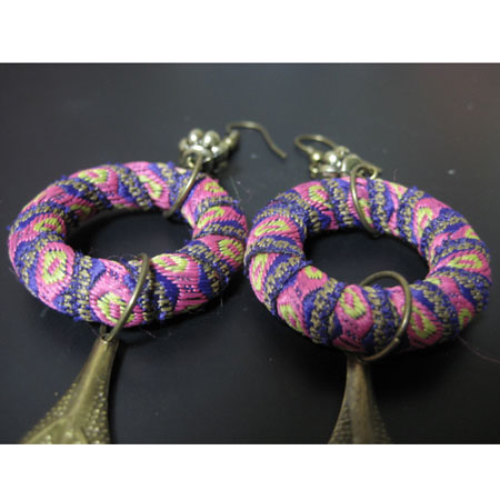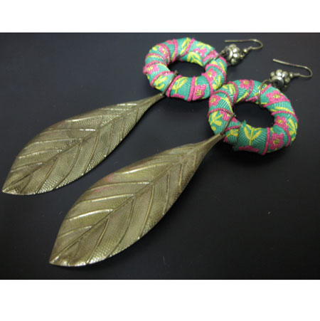 - 詳細 : チロリアンテープのリング×リーフの葉っぱが可愛いピアスです。
