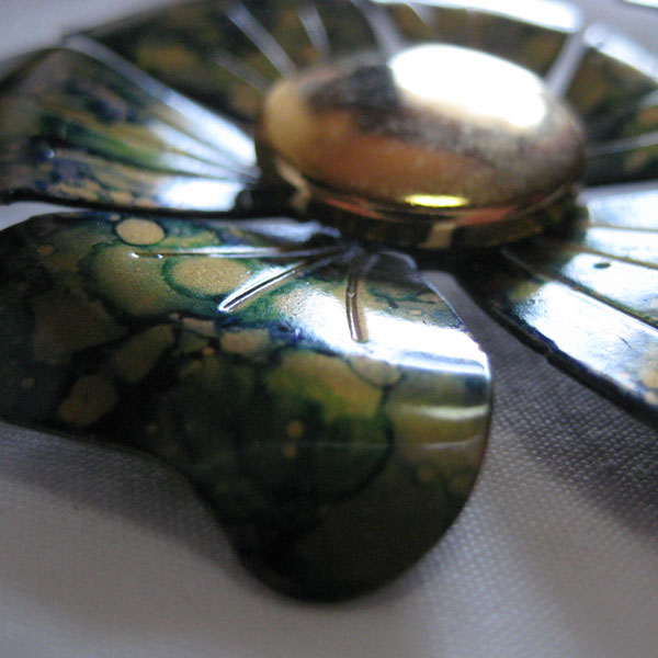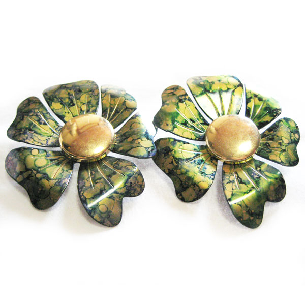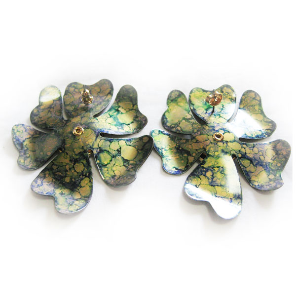 大きめで存在感ありますね!グリーンのマーブリングカラーです。お勧めのピアス。