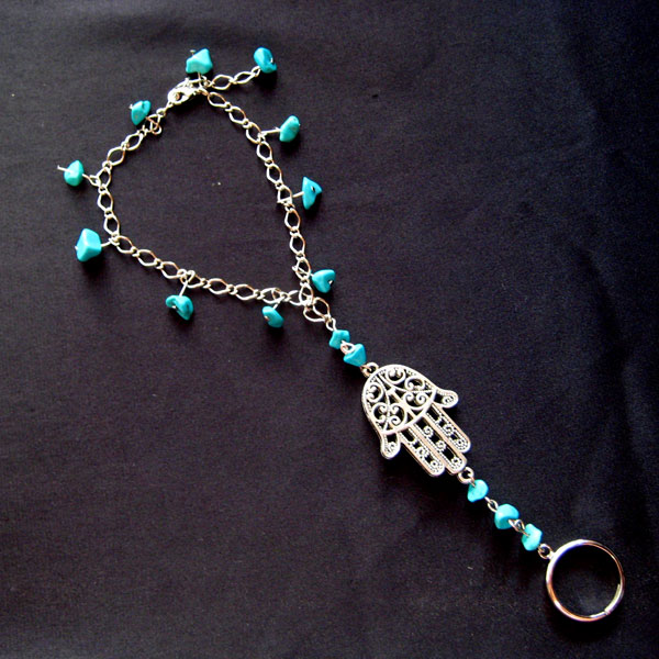 - 詳細 : モロッコのお守り、ハムサ(ファティマの手)とターコイズが好相性のリングブレスレットです。