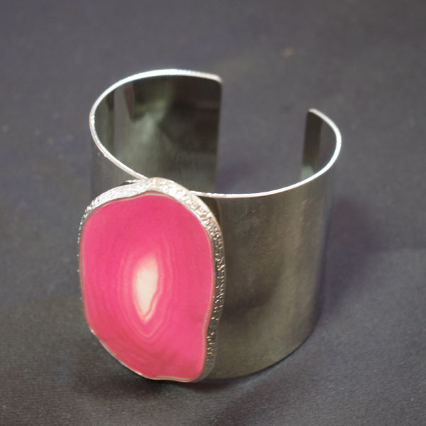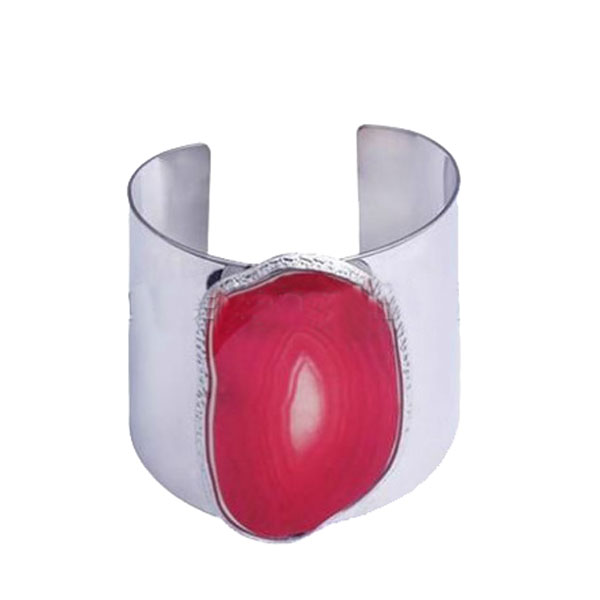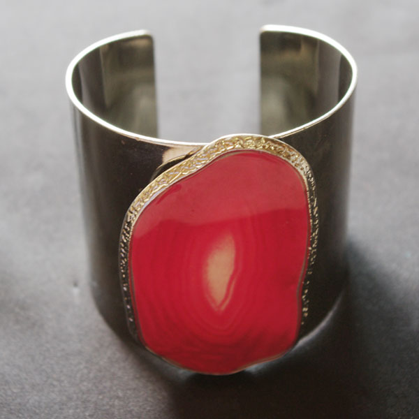 - 詳細 : 太めのシルバーのバングルに赤の瑪瑙風プレートが付いています。