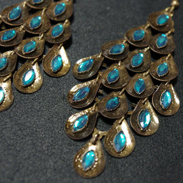 - 詳細 : 古美銅ぽい、カッパーの落ち着いた色目に透明感あるブルーのシャンデリアピアスです。こちらも揺れるとかわいいです。サイズもオレンジより大きく、大人っぽい印象です。お勧めピアス。