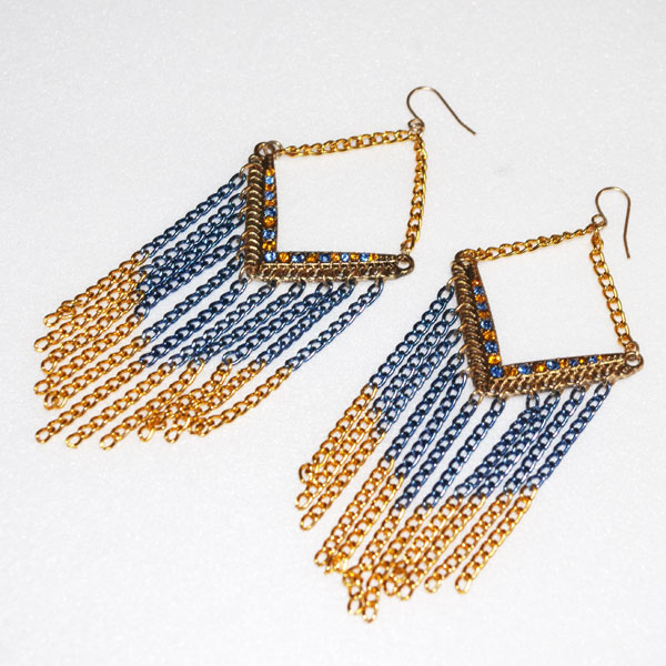 - 詳細 : ブルーとゴールドは相性がいいですよね。チェーンのシャンデリアピアスです。
